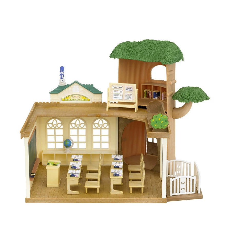 L’école comprend tout le nécessaire pour équiper l’intérieur pour 6 élèves et un(e) instituteur (trice). 35 pièces composent le set. Elle peut également être assemblée à la grande maison tradition (réf2752) et au set cottage cosy (réf2778), et au cabinet médical (réf2815).