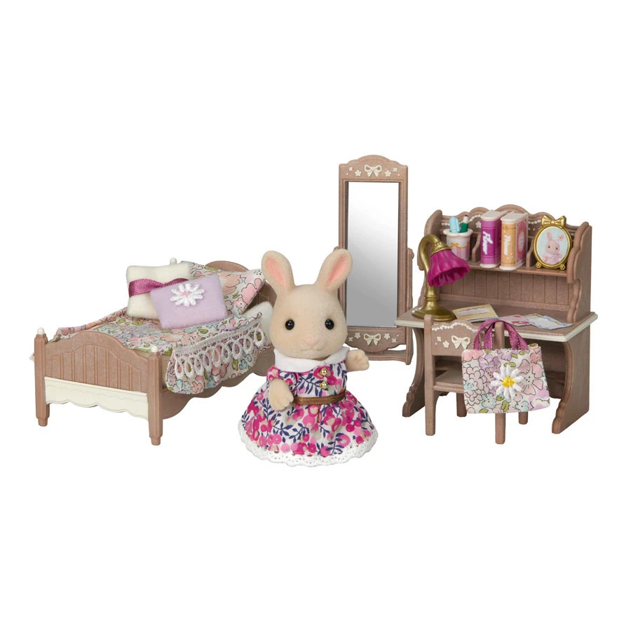 Ce set comprend une figurine Rebecca la fille Lapin CrĂšme et plus de 20 accessoires aux dĂ©tails soignĂ©s comme de jolies gravures sur le mobilier ou des tissus Liberty sur la parure de lit et la robe du personnage.Â