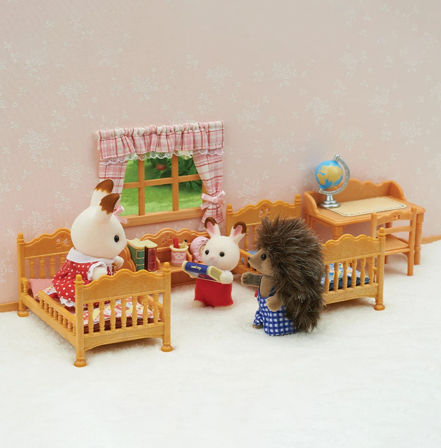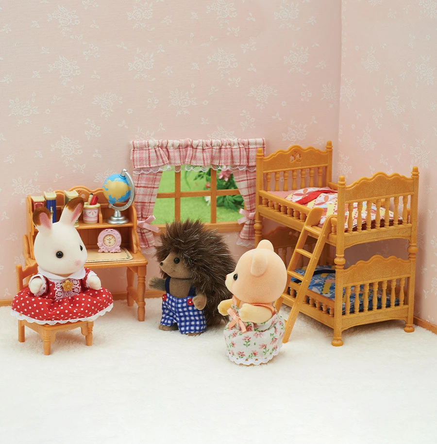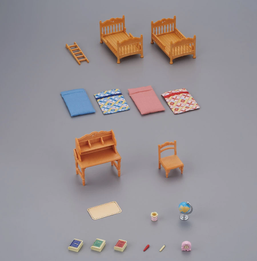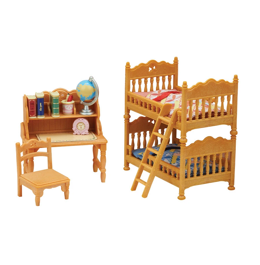 Pour meubler la chambre des enfants, ce set est idéal : il comprend deux lits superposés avec leur parure de lit, un bureau et de nombreux accessoires.