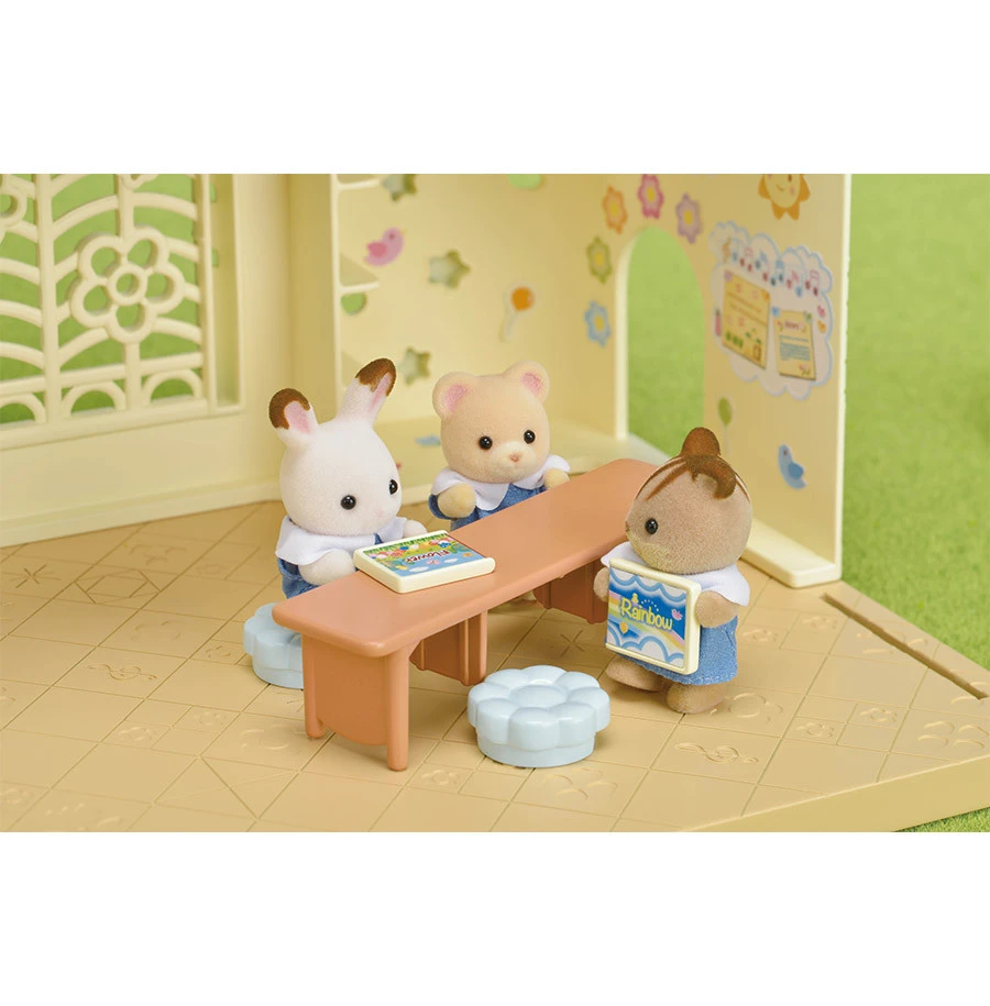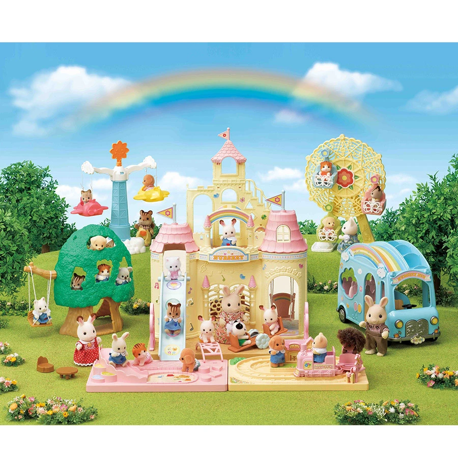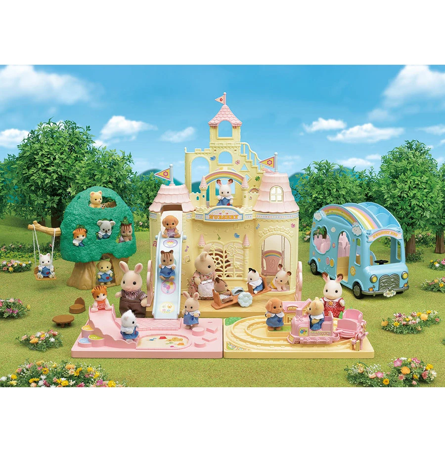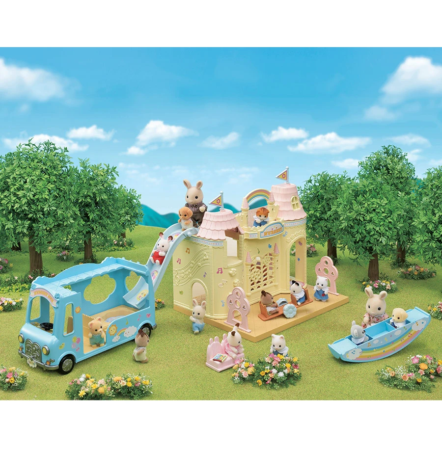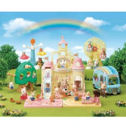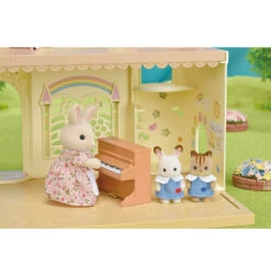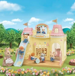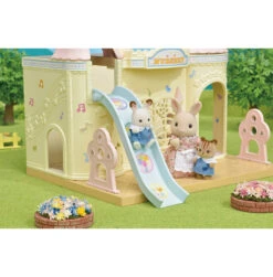 Cette crèche en forme de château est livrée avec de nombreux accessoires de jeu, tels qu’un piano, une balançoire, un toboggan et un banc pouvant être transformé en balançoire. En modifiant la position du sol, vous pouvez créer différents univers : une pièce plus grande ou un jardin sur lequel divers accessoires de jeu peuvent être placés. Le château (5319) peut être positionné sur le toit afin d’agrandir la crèche.