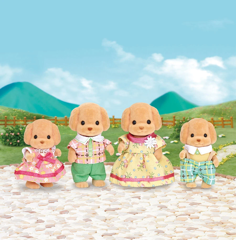 La famille caniche comprend le papa caniche, la maman caniche, le fils caniche, la fille caniche. Tous les personnages sont articulĂ©s et leurs vĂȘtements peuvent ĂȘtre mis et enlevĂ©s Ă loisir.