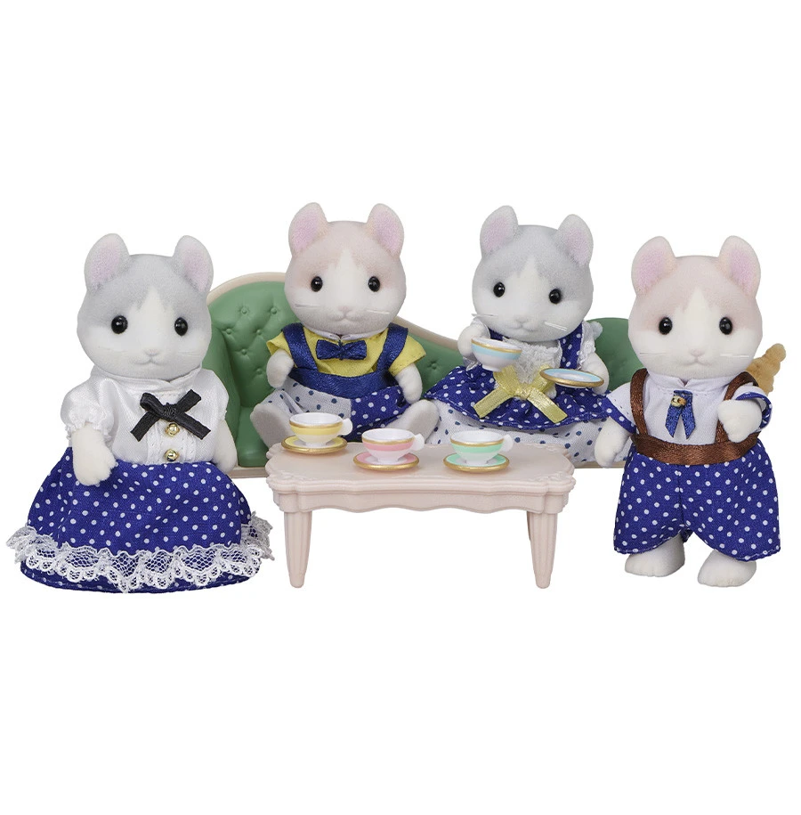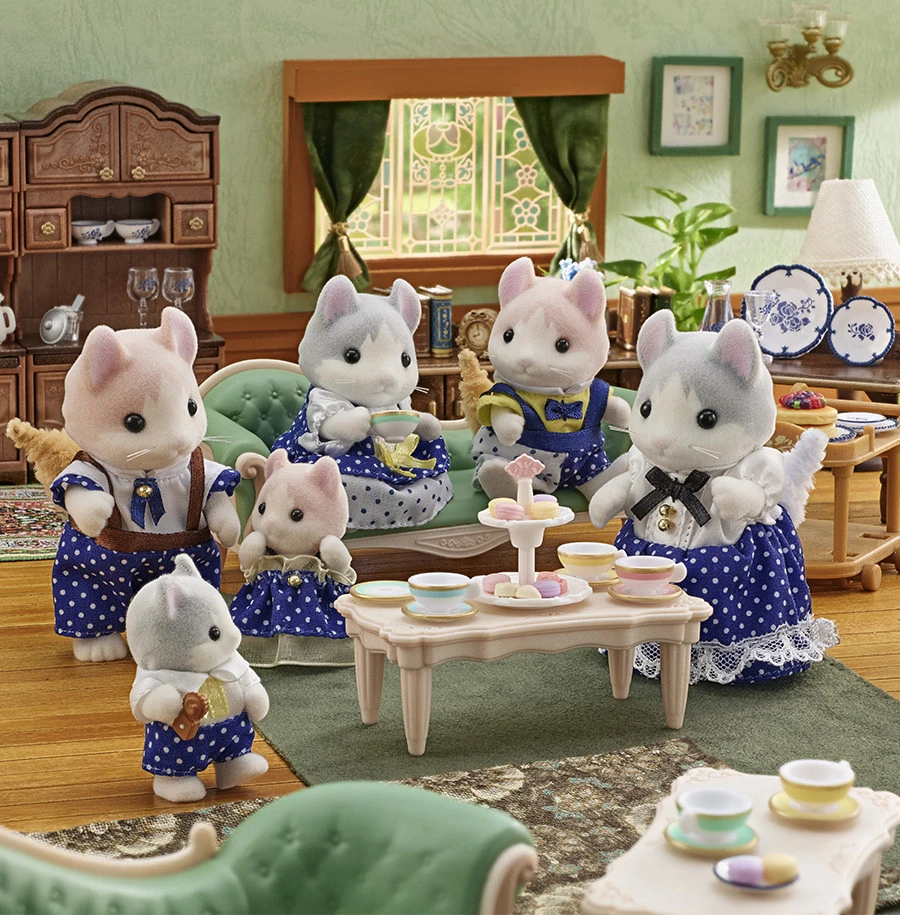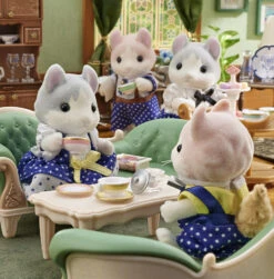 La famille Chat American Curl Sylvanian Families est livrée avec un ensemble pour le thé : 1 table, 1 canapé, 4 tasses et leurs soucoupes