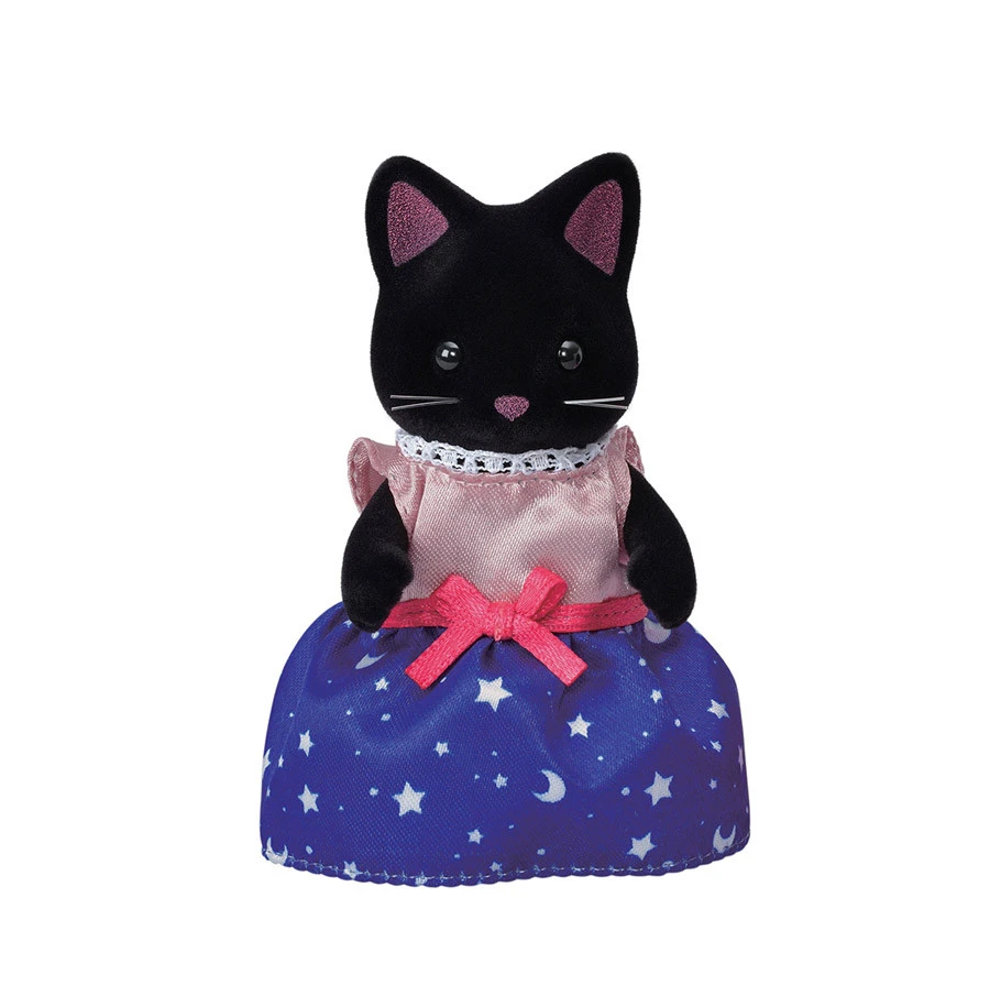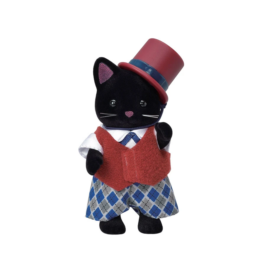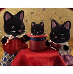 La famille chat magicien est composĂ©e de 4 membres articulĂ©s tout doux et vĂȘtus de tenues qu’il est possible de mettre et d’enlever Ă loisir.