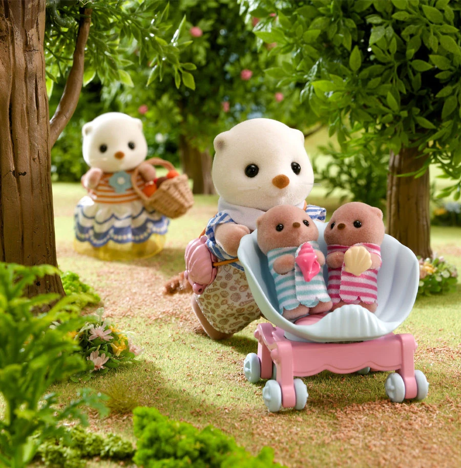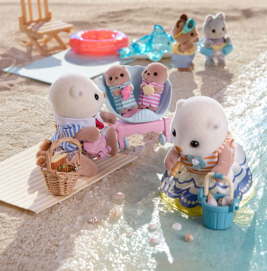Cet ensemble comprend la mĂšre, le pĂšre et les bĂ©bĂ©s Loutre de mer, dans des tenues Ă motif coquillage, avec un landau et un sac Ă bandouliĂšre. Les deux bĂ©bĂ©s peuvent monter dans le landau coquille. Le sac Ă bandouliĂšre s’ouvre et se ferme et comporte une perle Ă l’intĂ©rieur.Â