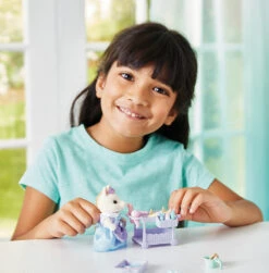 Ce set comprend une figurine maman Poney, un chariot de coiffure et plus de 15 accessoires.Â