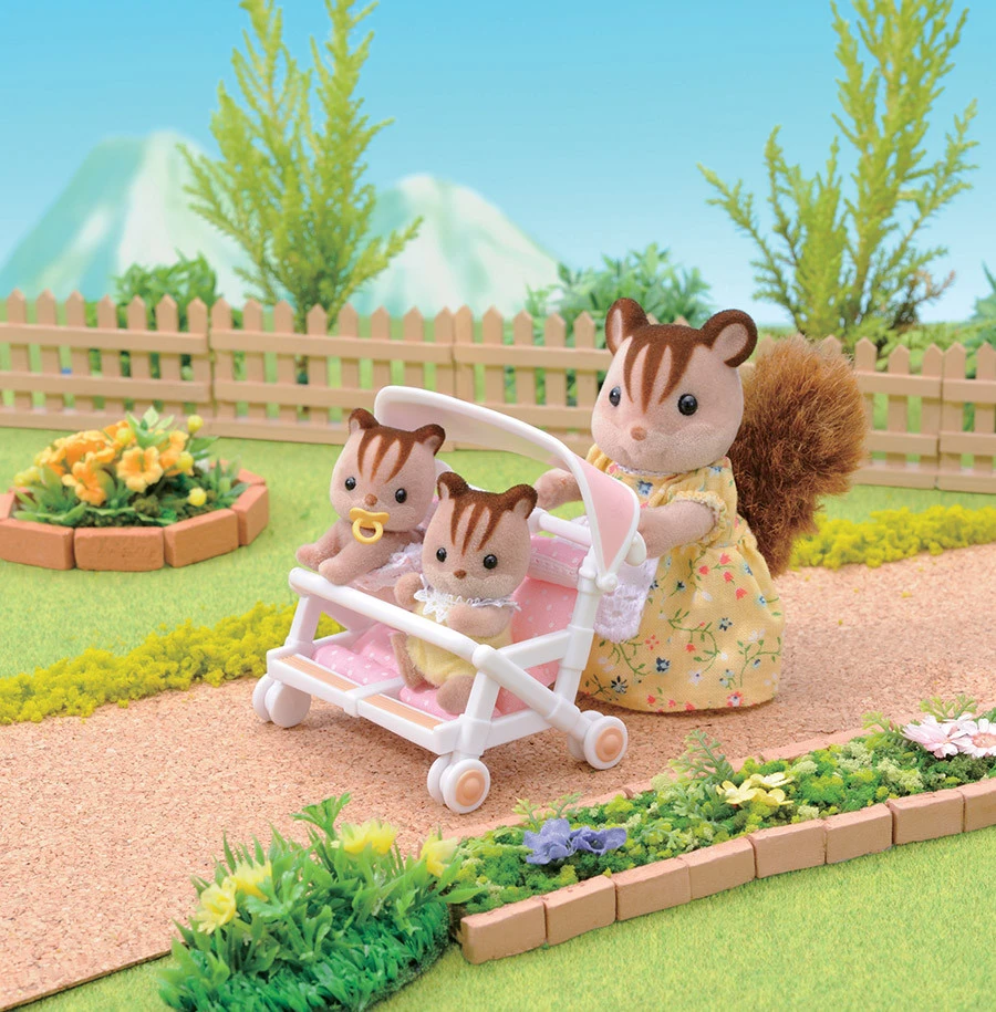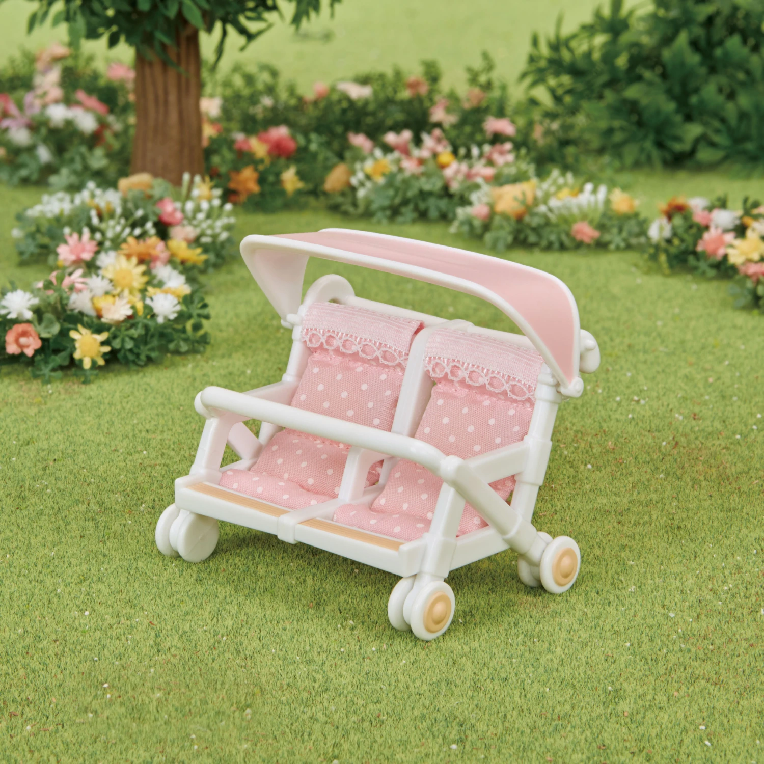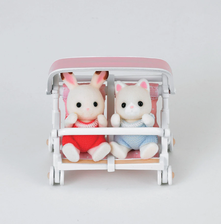 Ce set comprend 1 poussette double munie d’un pare-soleil.