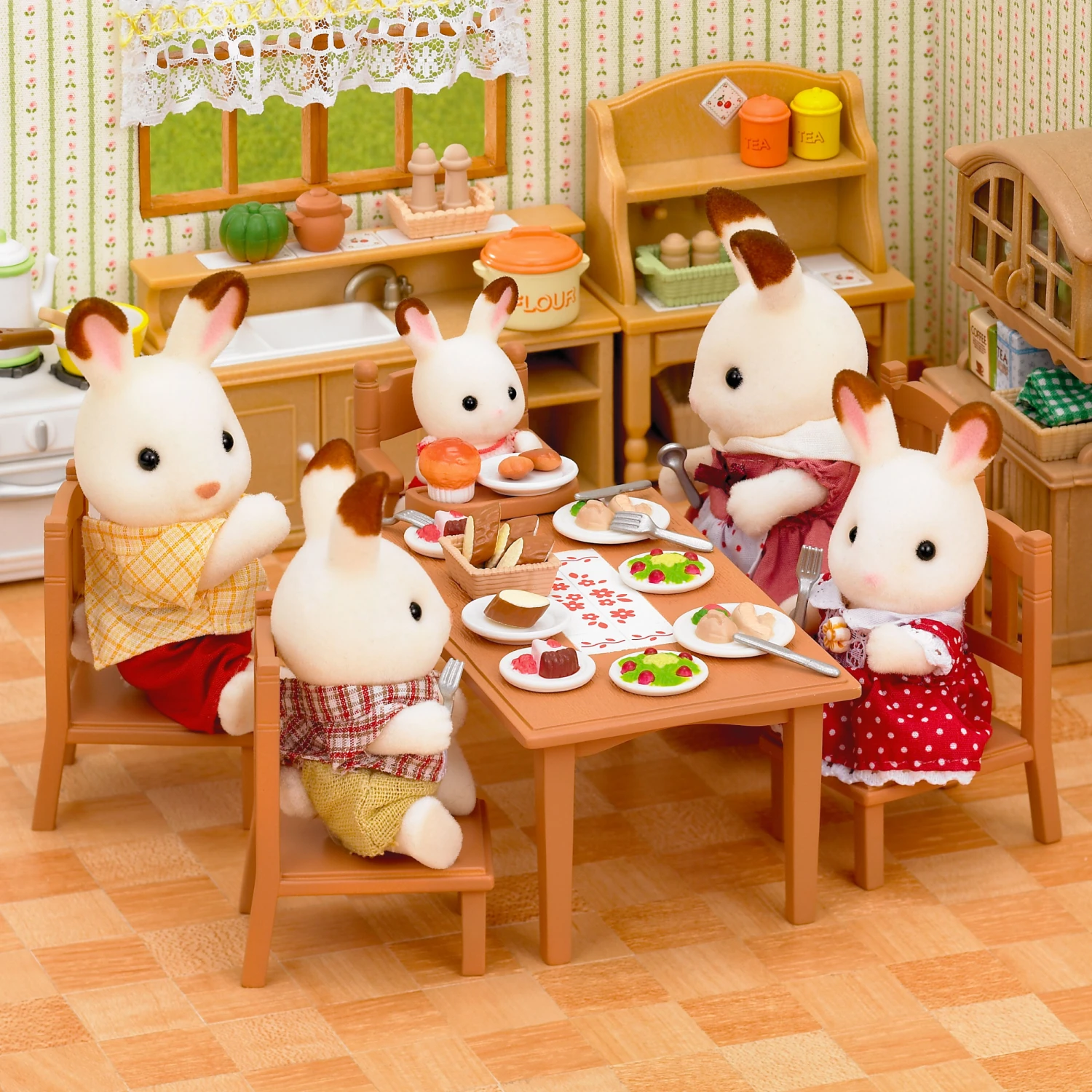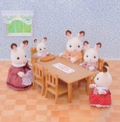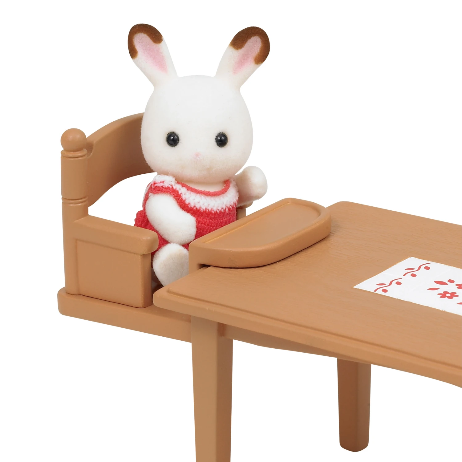 Cette table rectangulaire est fournie avec 4 chaises et 1 siÚge bébé à fixer à la table.