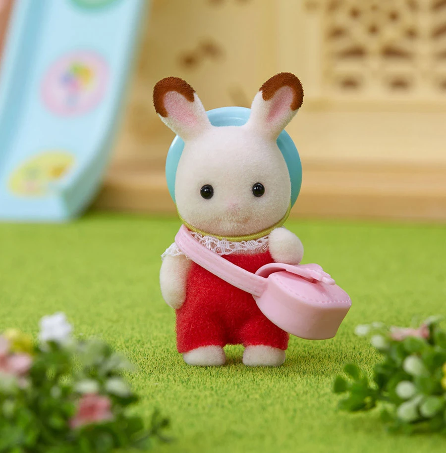 Le bébé lapin chocolat est articulé et vêtu d’un pyjama.