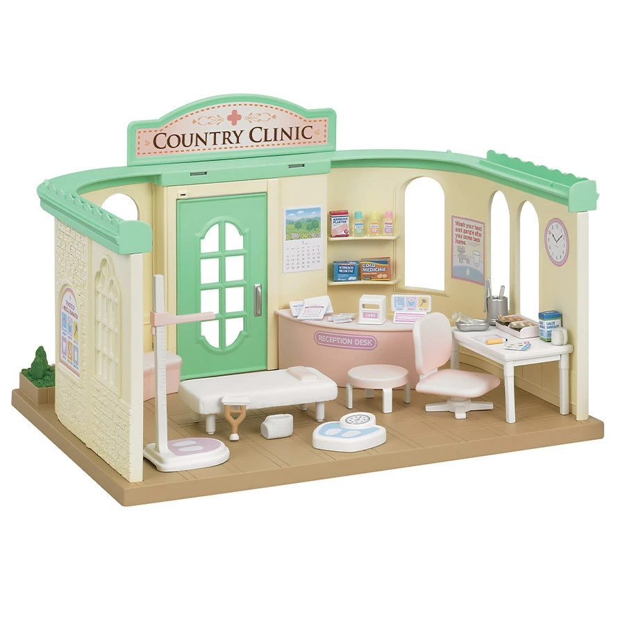 Ce coffret contient : comptoir de rĂ©ception, banquette pour salle d’attente, lit de consultation, bureau, chaise pivotante, pĂšse personne, toise, blouse de mĂ©decin, stĂ©thoscope, et encore plus de 30 accessoires pour soigner. Il peut ĂȘtre assemblĂ© Ă toutes les maisons du village : maison tradition Ă©clairĂ©e (rĂ©f2752), Set cottage cosy (rĂ©f2778), Maison aux 3 histoires (rĂ©f2745) mais Ă©galement Ă la crĂšche et Ă l’Ă©cole de la forĂȘt.