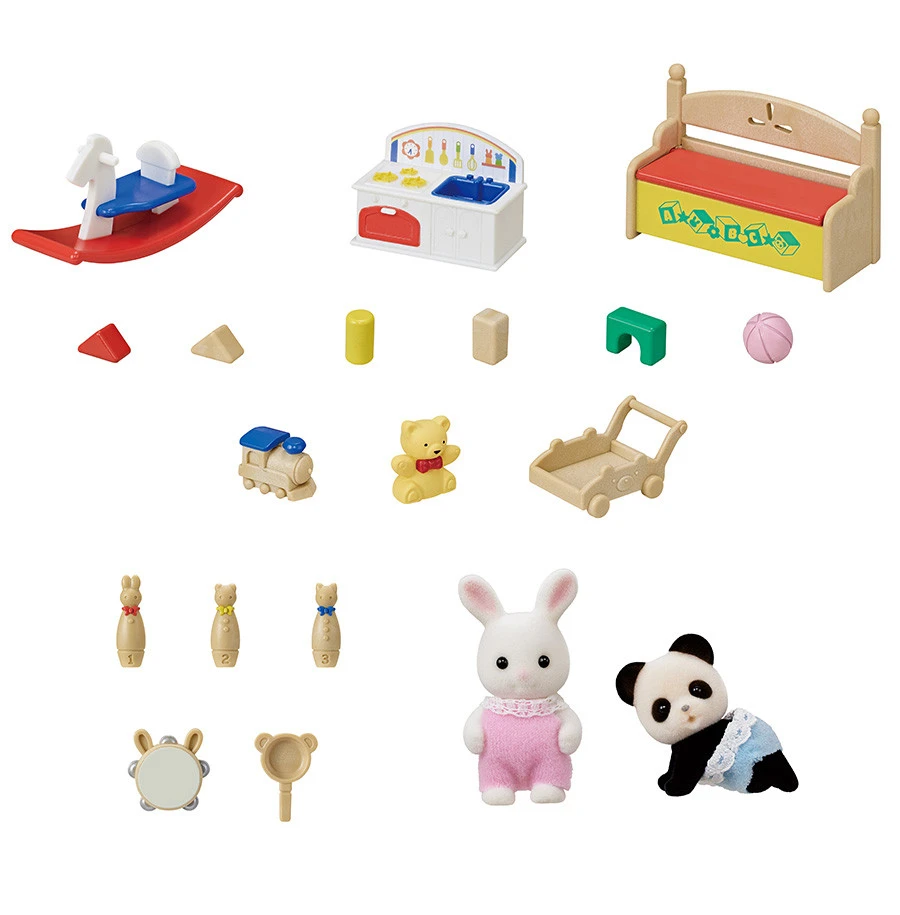 Le coffre à jouets des bébés est un set composé de 19 pièces pour que les bébés Sylvanian puissent jouer pendant des heures.