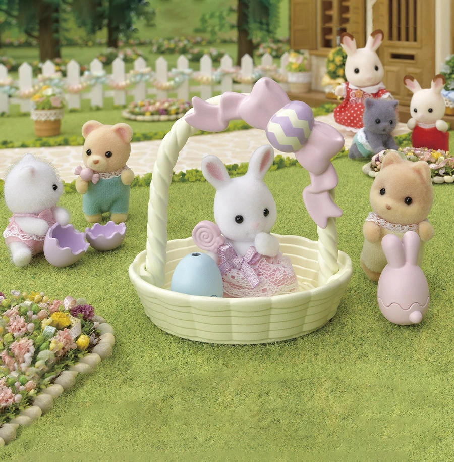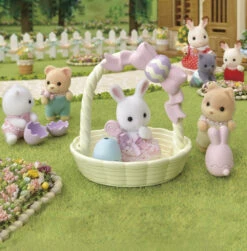 En avant pour la chasse aux œufs ! Les bébés Sylvanian sont tous réunis dans le jardin, à la recherche des chocolats de Pâques.
