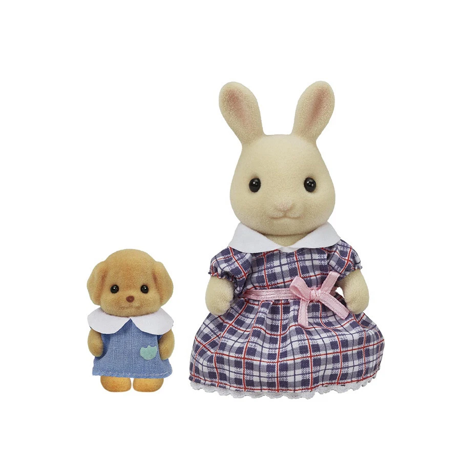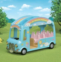 Offrez ce coffret à votre enfant, comprenant plus de 25 pièces et 1 figurine maman lapin crème, 1 figurine bébé caniche, 1 crèche des bébés, 1 toboggan, 1 balançoire, 1 piano, 1 table, 2 tabourets, des décorations, 1 bus arc-en-ciel, des sièges…