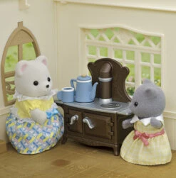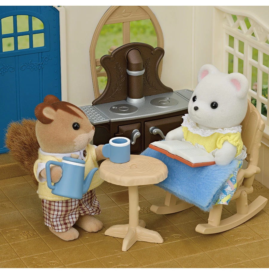 Mais les Sylvanian peuvent aussi prendre le temps de boire une boisson chaude préparée sur la cuisiniÚre, bien confortablement installés sur le rocking chair, sous le plaid tout chaud.
