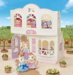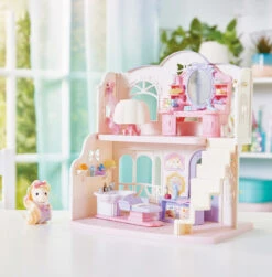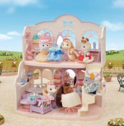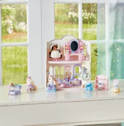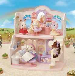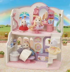 Le salon de coiffure Sylvanian est composĂ© d’un bĂątiment Ă Ă©tage, d’une coiffeuse avec miroir, d’un bac Ă shampoing avec son fauteuil inclinĂ©, d’un comptoir, d’un fauteuil de soin, et de nombreux accessoires pour rĂ©aliser des coiffures. Il est livrĂ© avec Sally, la fille Poney.Â