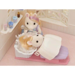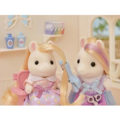 Le salon de coiffure Sylvanian Families peut ĂȘtre complĂ©tĂ© avec la maman Poney et son kit de coiffure ainsi que les amis Poney et leurs kits de coiffure (vendus sĂ©parĂ©ment).