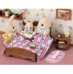 Lit fourni avec sa table de chevet, 1 matelas, 1 couverture, 1 oreiller, 2 livres, 1 lampe, 1 réveil et 1 boßte de décoration.