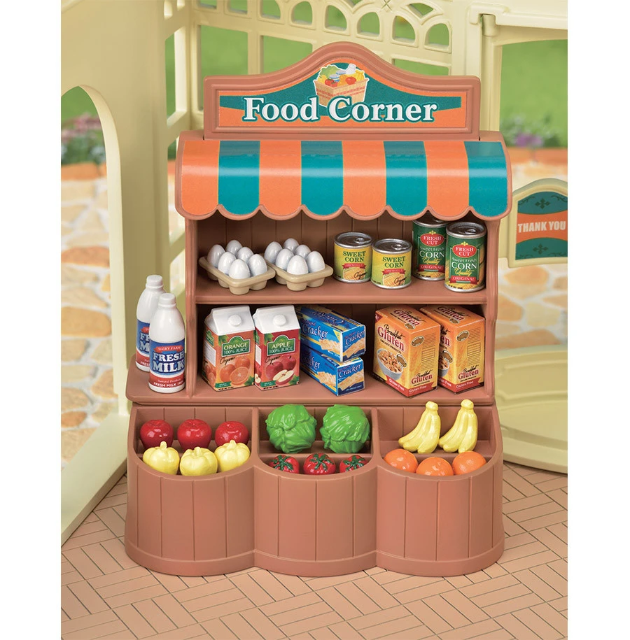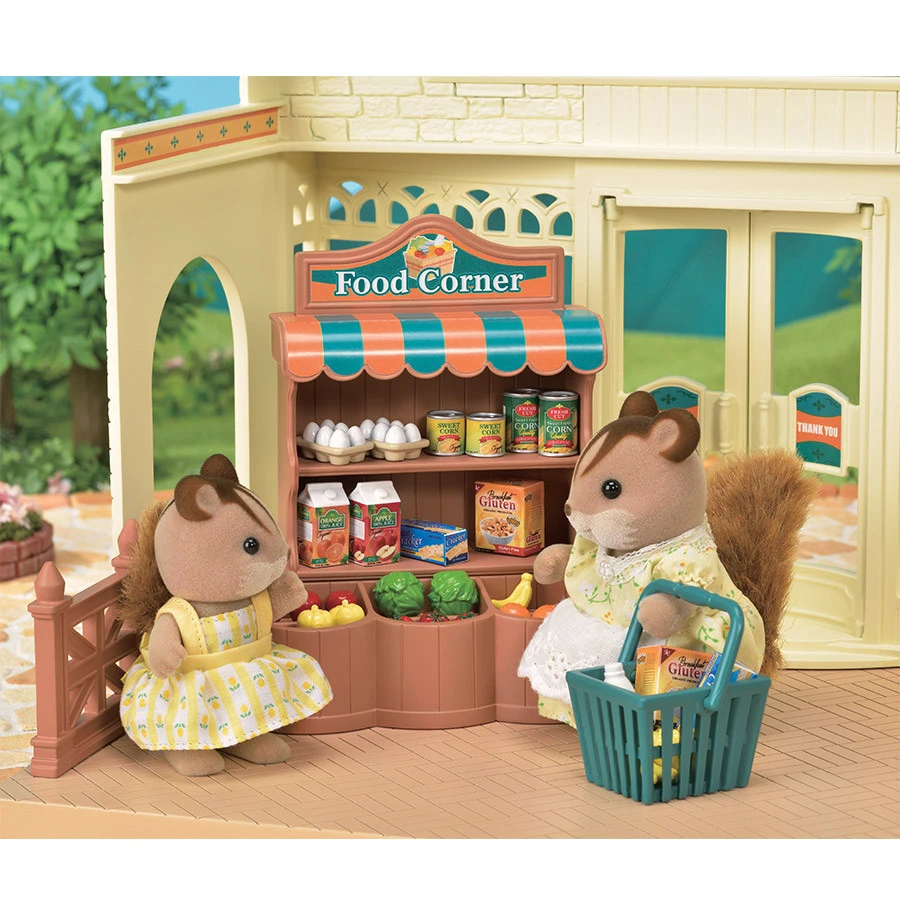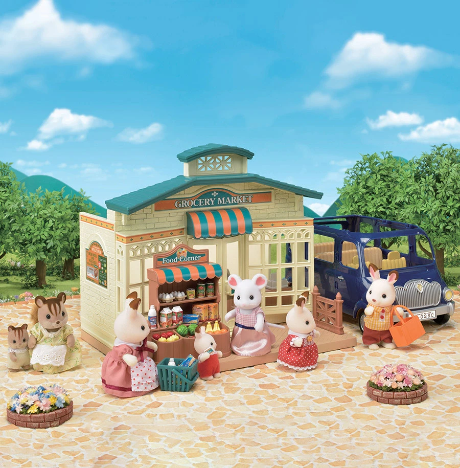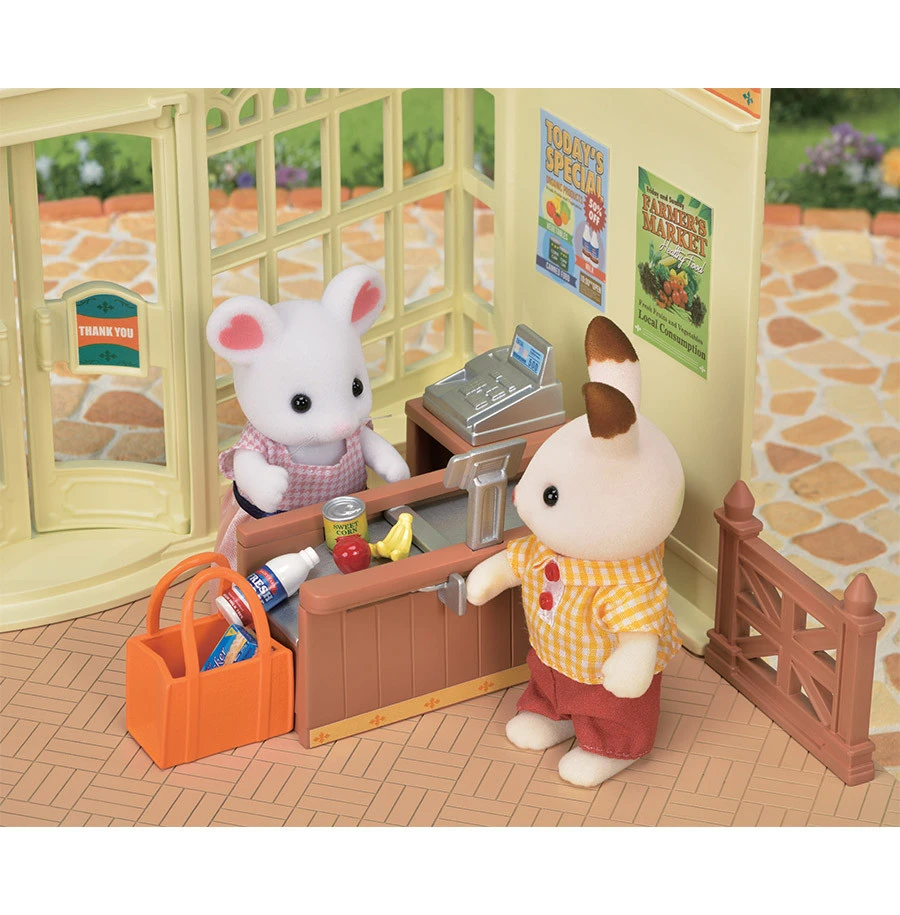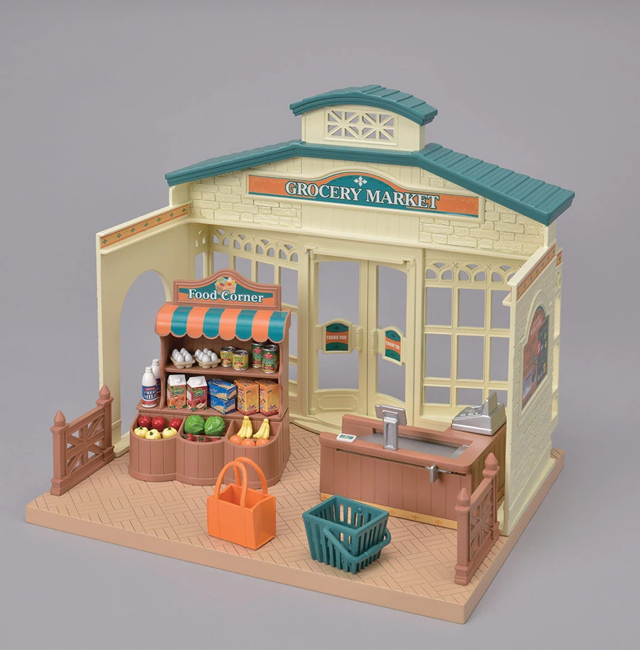 Le supermarché peut être agencé comme bon vous semble. Il contient une caisse, un étal pour exposer les produits, des paniers, des fruits, des légumes et des produits manufacturés. Ce supermarché est composé de plus de 35 pièces pour imaginer de nombreuses histoires.