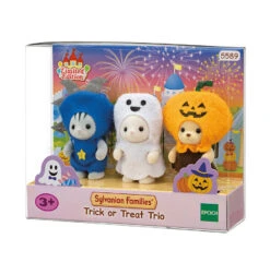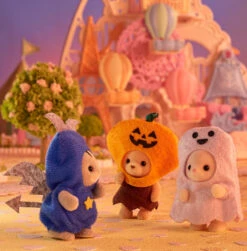 Ce coffret de figurines miniatures sur le thème d’Halloween comprend 3 figurines bébé portant chacune un costume qu’il est possible de mettre et retirer à loisir. Les costumes sont interchangeables.