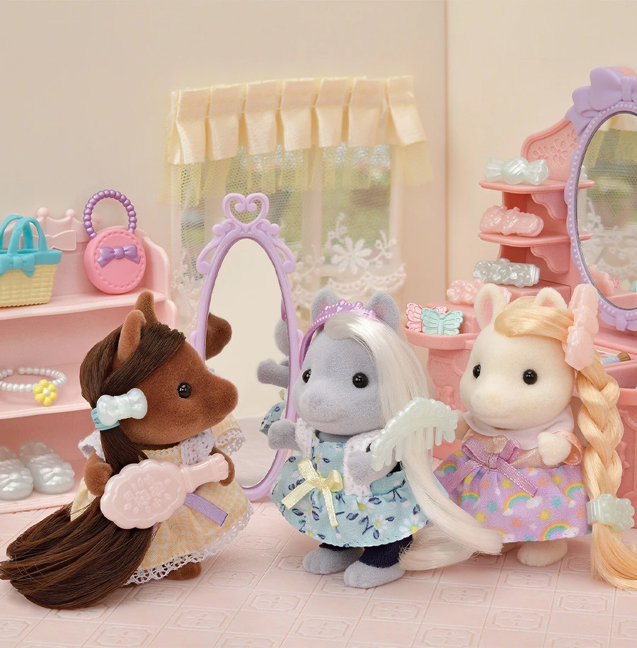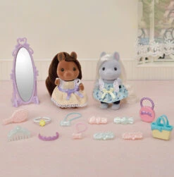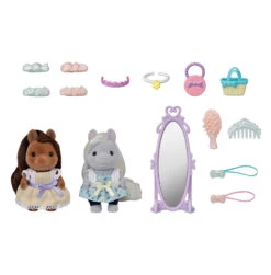 Votre enfant va adorer s’amuser avec ce set les amies Poney et leurs kits de coiffure, pour prendre soin de ses figurines Sylvanian Families prĂ©fĂ©rĂ©es !