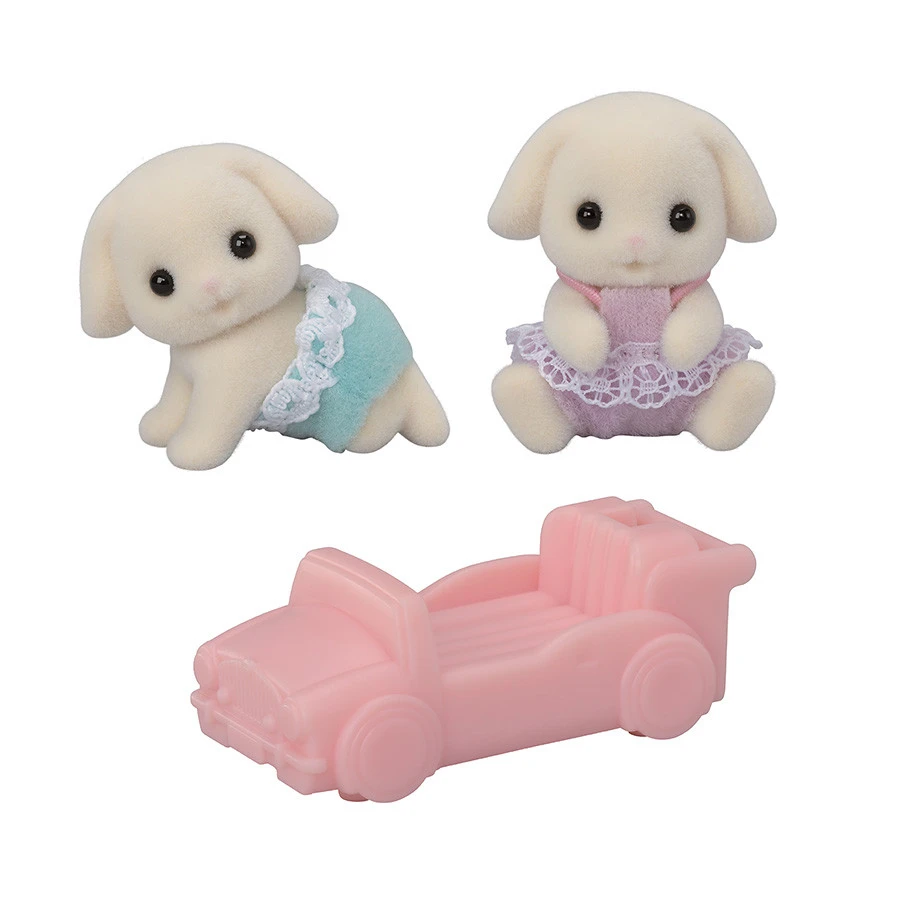 Ce set comprend deux figurines bĂ©bĂ© Lapin BĂ©lier : 1 figurine en position 4 pattes avec un pyjama bleu et 1 figurine assise avec un pyjama rose.Â